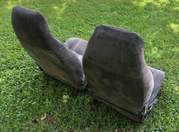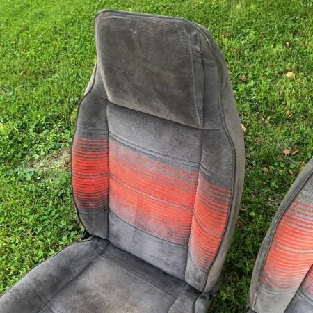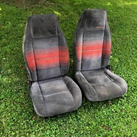 Pair of GMC Jimmy bucket seat, grey with red stripes. Not perfect, but good driver quality.