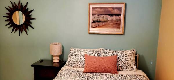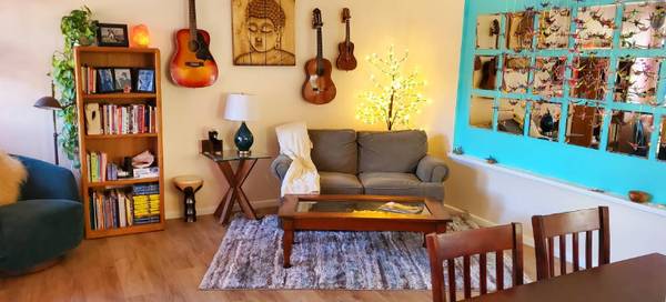 No chemical fragrances in body or cleaning goods. The house has healing energy and is clean and organic. natural cleaning supplies. No mold. It's the ideal hideaway location for recuperating from sickness or injuries. No steps. please leave you phone number so i can contact easily.