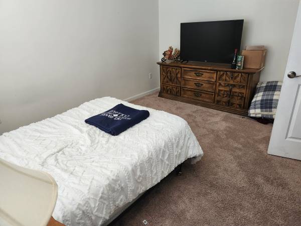 Room rate includes all bills, utilities, and parking. We have two long-term rooms available and one short-term room that can include furnishing for an additional $100 a month. Room comes with kitchen access with pantry / fridge / cabinet space including cookware. Living room is fully furnished with Netflix / Paramount+ on smart TV.