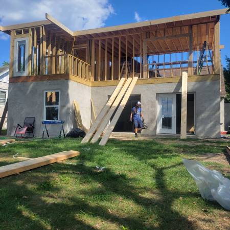 We do all phases of contracting From Building to additions Roofing flooring kitchens and bathrooms drywall etc...