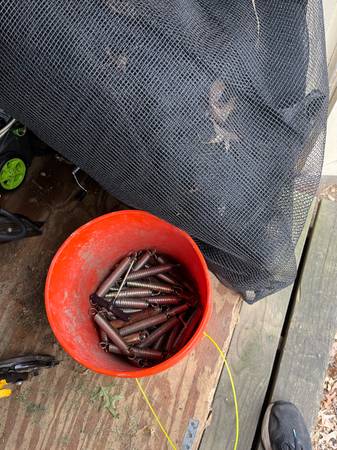 All the parts needed for a trampoline except the mat. Everything is in working order. Our mat got ripped by a tree branch. Can email or text 443 eight 0 four 4157