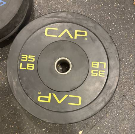 Complete set of bumper plates from 55,45,35,25,15,10. $1 per pound. 2” hole