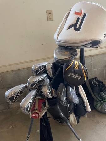 R1 driver, callaway irons, odyssey putter, callaway wedges, bunch of decent balls and bag caddy