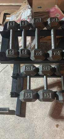 5-50 metal hex Dumbells set with rack