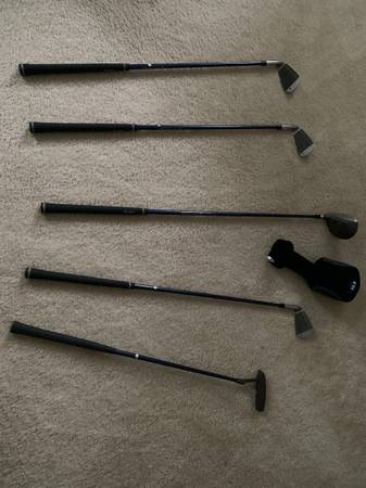 Knight junior golf club set, including 5,7,9,putter, driver, driver headcover, standing bag; length of driver is 35 inches; in excellent condition.
