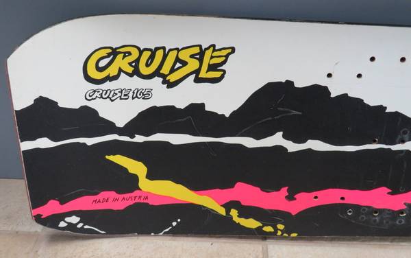 The item for sale is a Burton cruise 165 snowboard. This board was manufactured in 1989 and features a wood core! There are NO bindings included with the board. It would look great on the slopes or hanging on a wall! If you have any further questions please feel free to ask!