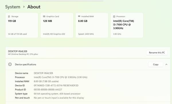 $100, Pickup only, Sorry NO Delivery... Model: HP Slimline 270-P043W CPU: Intel Core i3 7100 RAM: 8Gb Storage: 120Gb SSD OS: Win 11 Pro, MS Office 365 Pickup locations - 1565 Hyde Park Rd, Essex,...