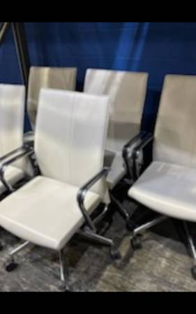 5 leather task chair in white leather Davis in the manufacturer Fully functioning fully adjustable Super nice rolling task chairs Great for office conference table or individual desk $250/5 Only 5...