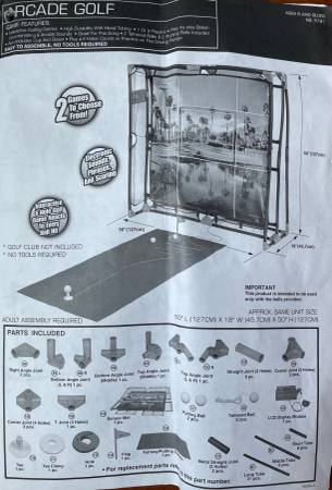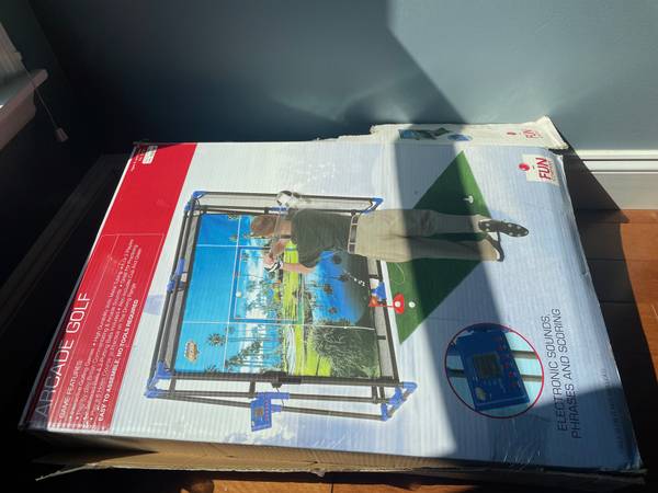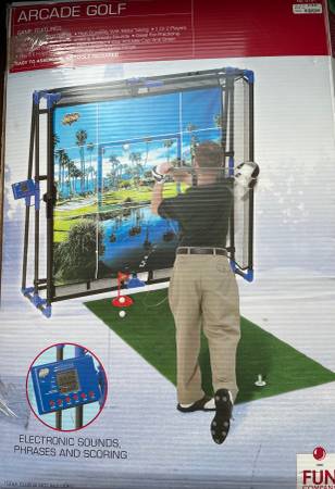 Fun arcade-style golf game by The Fun Company – lightly used and packed back in the original box, still in good condition. Great for kids (ages 8+) or anyone who wants to practice their swing...