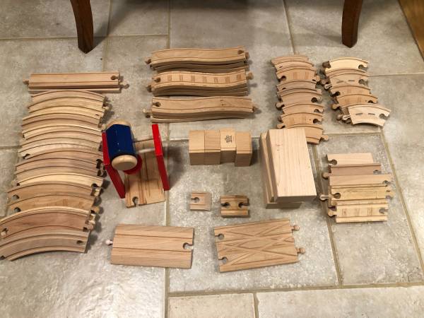 Custom, one of a kind, Thomas the Train Table. Table is made of wood and is hand painted. Table measures 58 ½” x 42 ½” x 21” (L x W x H). Includes all track and bridges shown in the picture below, Round House, Cranky the Crane, Marion Signal House and turn table. Set also includes 19 trains and 68 pieces of additional track for creative assembly.