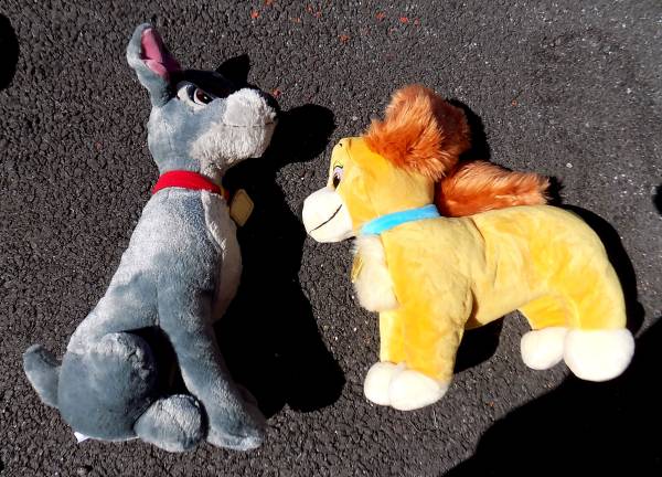 Disney Pixar T Rex posable toy that measures 10 inches tall - $10 or Disney Lady and the Tramp plush toys that measures 15 inches and 12 inches tall - $10 for the pair