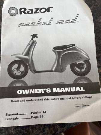 Razor Bistro electric scooter With charger-May need new charger $100 or best offer