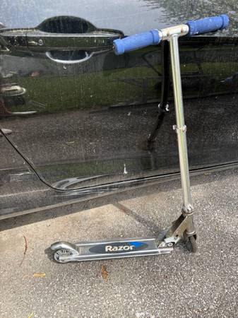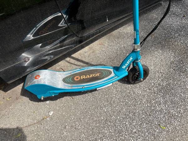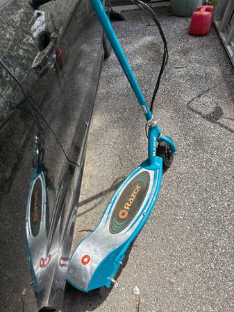 Razor ride on scooter - $45.00 Electric stand up razor scooter - $30.00 Have three kids manual scooters - $5.00 each Skateboard $5.00