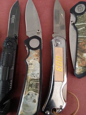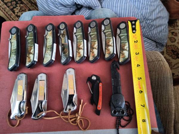 13 New pocket knives, $35 for all.... If interested Text me at , or stop by 85 Smith Ave Aberdeen MD 21001