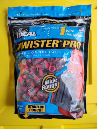 Ideal Twister Pro Wire Connectors. Min. 2 #18 AWG to Max. 4 #10 AWG. #30-644. Qty. 250. Never opened. Cash only. I may also be available to install the wirenuts. Email me. #electrician #panel...