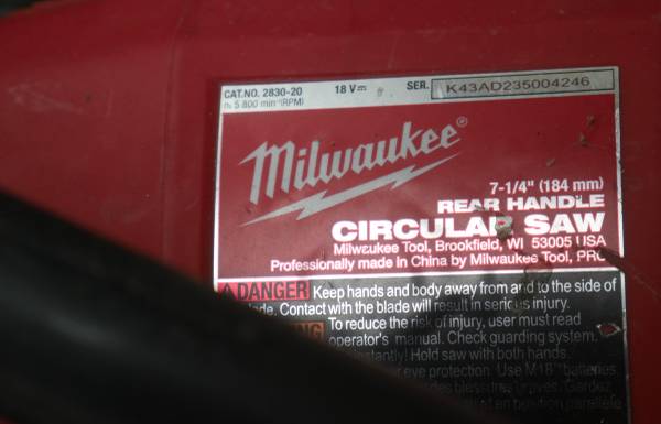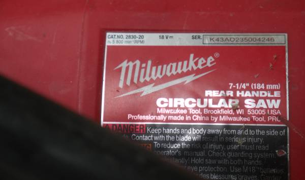MILWAUKEE CIRCULAR SAW 2830-20 USED 888916-3