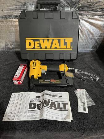 Selling a DEWALT D51422K 1-1/2-Inch X 1/4-Inch 18 Gauge Pneumatic Narrow Crown Stapler in case, with safety glasses and instructions. I only used this crown stapler once and I am including a box of crown staples with a few staples missing. This Heavy-Duty Narrow Crown Stapler is great for big upholstery jobs, finish carpentry tasks, and cabinetry applications. This crown stapler has the ability to handle 1/4-inch narrow crown staples that range in length from 1/2-inch to 1-1/2-inches. It has a tool-free indexed depth setting is lockable and repeatable, assisting in locating the perfect depth setting. Cash and pickup only