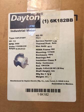 Industrial motor - new in box - never used 1/2 HP 3450 RPM