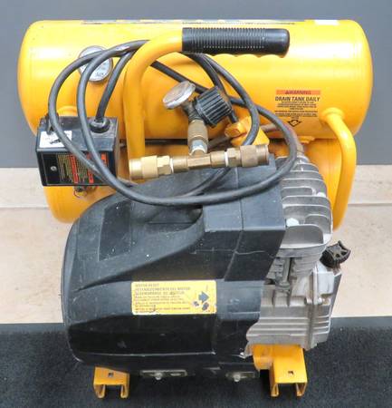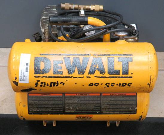 The item for sale is a Dewalt 4gal dual tank air compressor. It has scuffs and scratches from age/use, but nothing too major. It has been tested to ensure it builds pressure and cuts off. If you have any further questions please feel free to ask!
