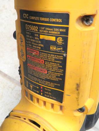 The item for sale is a Dewalt D25602 rotary hammer drill. It is in fair condition overall. There are scuffs and scratches on the drill from use. It has been tested to ensure it is in good working condition. If you have any further questions please feel free to ask!