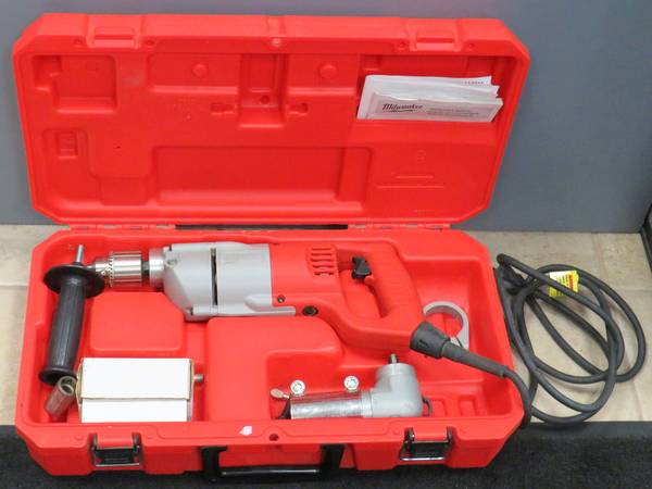The item for sale is a Milwaukee right angle drill. The head has been swapped for a straight angle, but the original head and chuck are included. It has been tested to ensure it is in good working condition. If you have any further questions please feel free to ask!