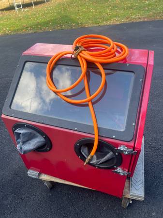 Blasting cabinet has sand it it. Calls only 410-977 two eight six 6 dolly not included