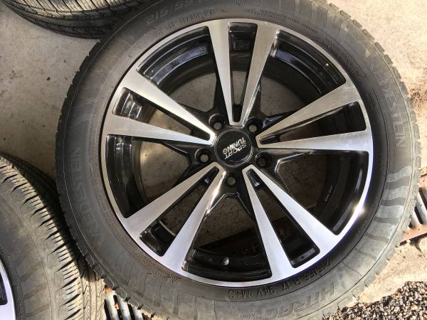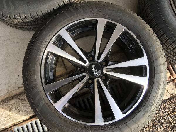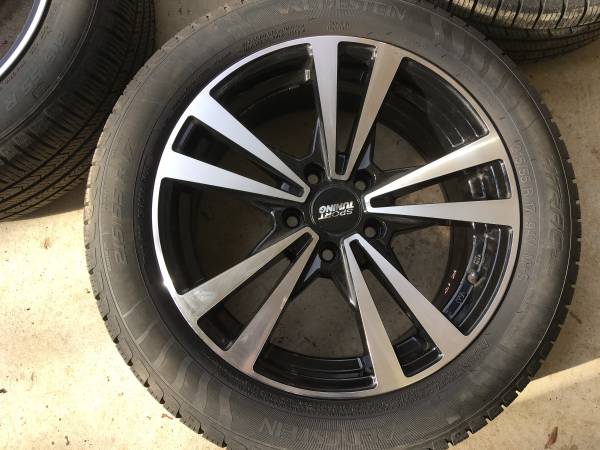 Like new (perfect) Honda wheels and tires. Fits Accord, CRV, Element, pre 2009 Pilot. 17"x 7.5", 5-114.3 lug pattern rims. 215/55R17 Vredestein tires. Smooth quiet ride. Only 10K miles. Road hazard insurance and 50K warranty included from Tire Rack. New black lug bolts included. Installation included. OBO