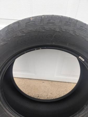 I have one Hankook Dynapro HTM Tire up for sale with no plugs or patches in it the tire has 9/32 tread left, if you are interested call or text me (Joe) at Thanks