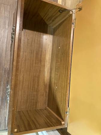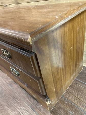 chest for storage. made from pressed board with a venner on the surface. Heavy and sturdy 38" L x 19" H x 17" D